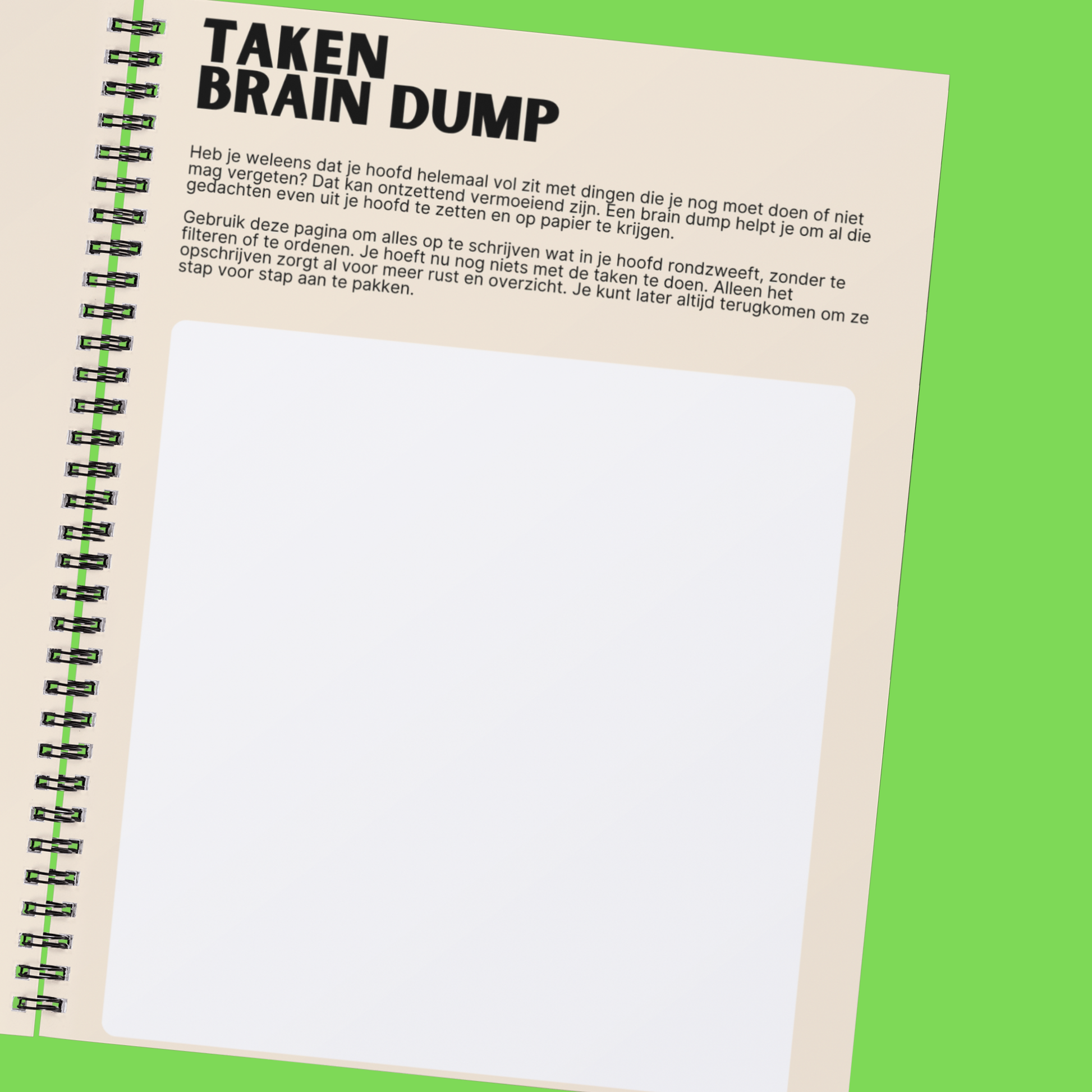 Laat je hersens niet overstromen. Geef ze ruimte, overzicht en structuur — op een manier die écht werkt.