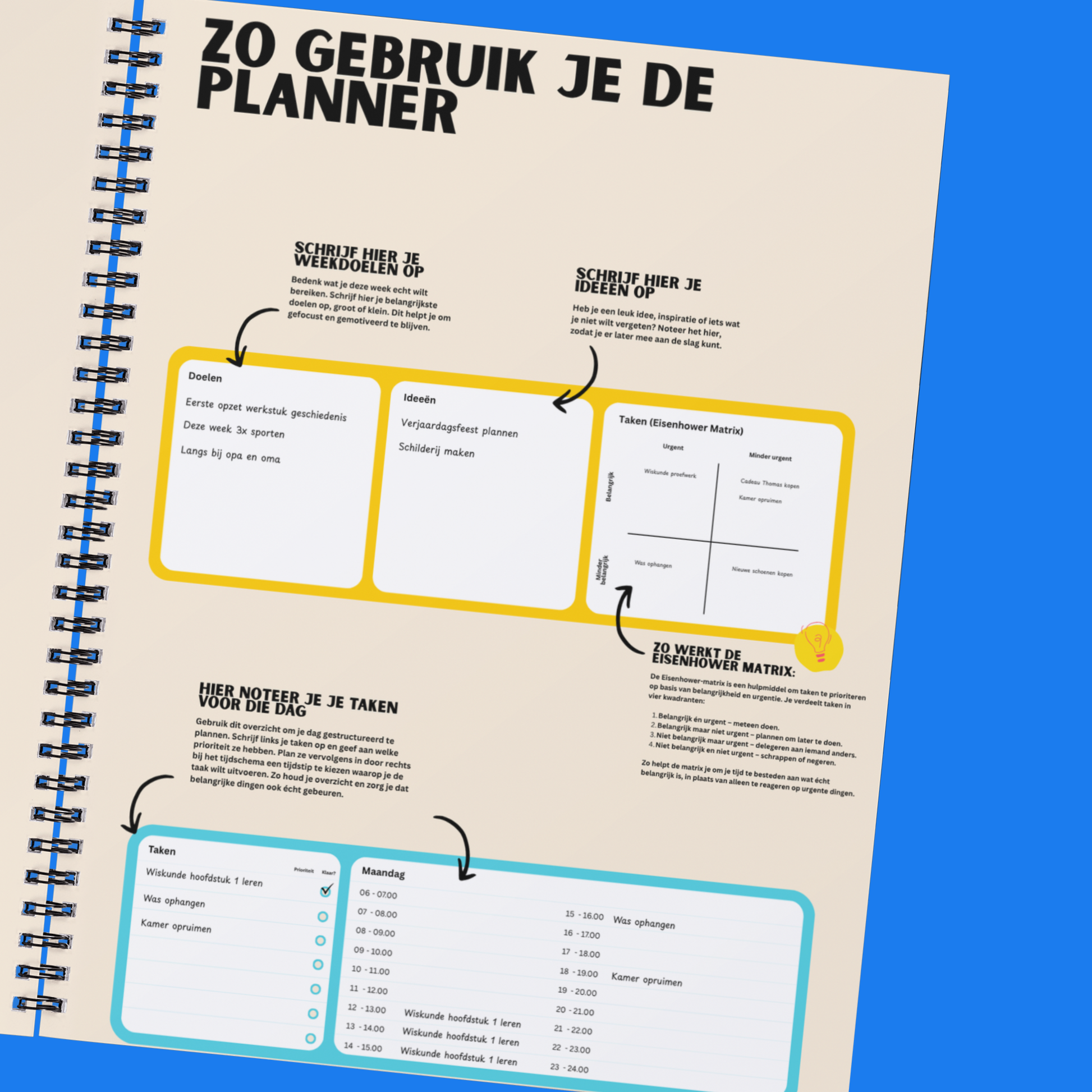 Weekplanning op jouw manier: Doelen, ideeën, prioriteiten en dagtaken overzichtelijk naast elkaar. Met tijdsblokken zodat je niet alles in je hoofd hoeft te houden.
